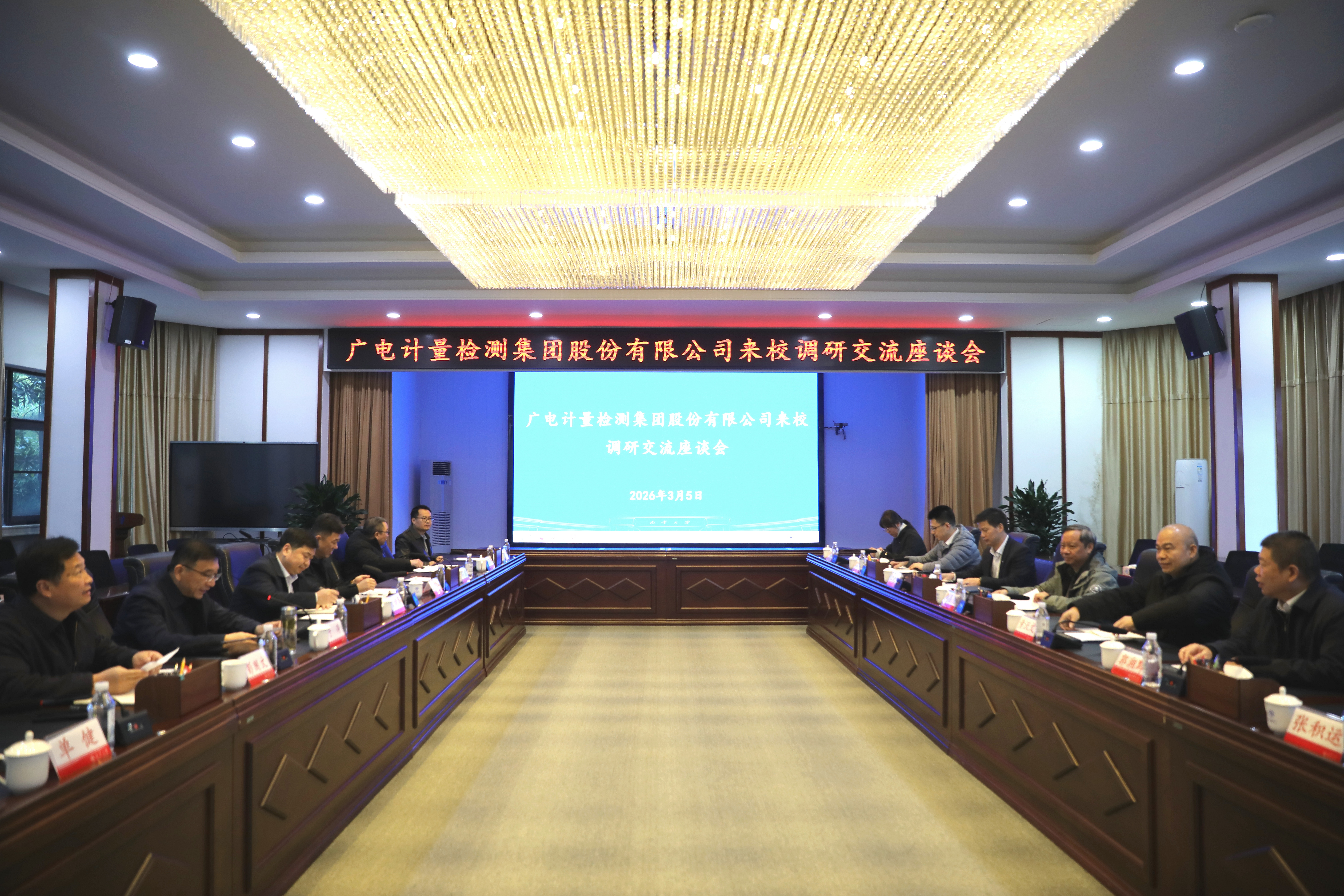 3 月 5 日下午,广电计量检测集团股份有限公司一行来PA官方平台计量学院调研,围绕放射计量领域开展深度调研交流,参观了湖南省氡重点实验室和盐卤化工相关实验室,双方就实验室建设、学院发展、校企合作等方面展开座谈,共话产学研融合发展新机遇。本次座谈会在红湘校区第一办公楼视频会议室举行,会议由PA官方平台党委委员、副校长于涛主持。
