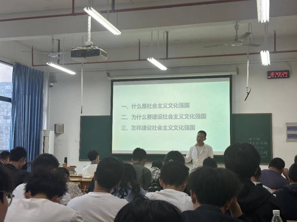 刘新伟老师主讲的《习近平新时代中国特色社会主义思想概论》“标杆课堂”教学展示中,主要围绕社会主义文化强国这个主题,讲授了什么是社会主义文化强国、为什么要建设社会主义文化强国、怎样建设社会主义文化强国。刘新伟老师充分利用课堂互动讨论、引导学生深入理解文化强国的内涵,课堂讲授过程富有感染力和启发性、教师知识面广,课堂气氛热烈,学生思维活跃,参与度高。