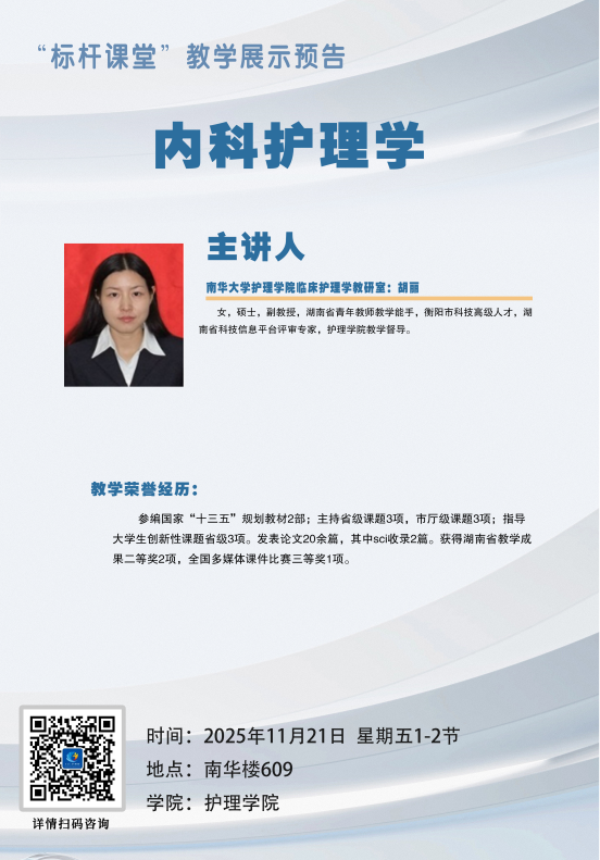《内科护理学》是护理专业的的一门专业必修课程,主要研究内科病人的生物、心理、社会等方面健康问题,运用护理程序实施整体护理,以达到恢复和保持病人健康的一门临床护理学科。内科护理学既是临床各科护理学的基础,又与它们有密切的联系,故学好内科护理学是学好临床专业护理课程的关键。PA官方平台护理学院负责的《内科护理学》也是湖南省线上一流课程。